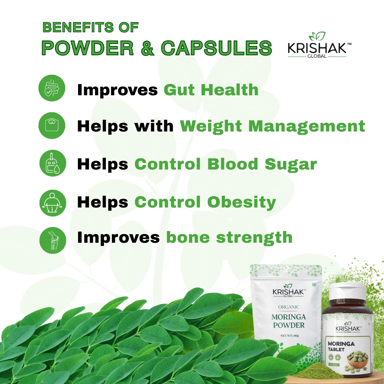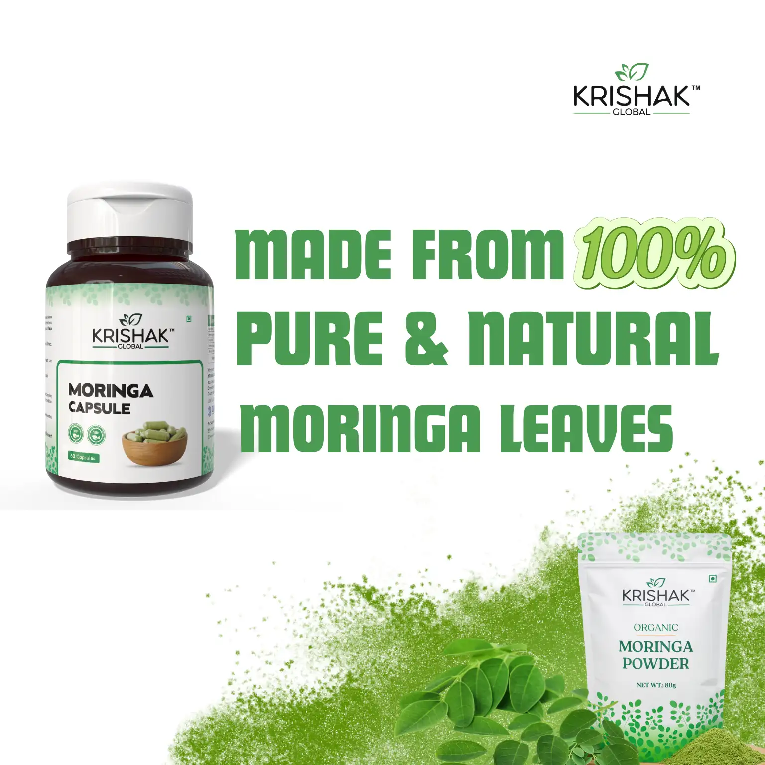 Moringa Powder is finely ground and easy to mix with water, smoothies, juice, or food, making it ideal for people who prefer a traditional and flexible way to consume moringa. Moringa Capsules offer a convenient alternative for those with a busy lifestyle, providing the same plant-based nutrition in an easy-to-consume form without any taste.